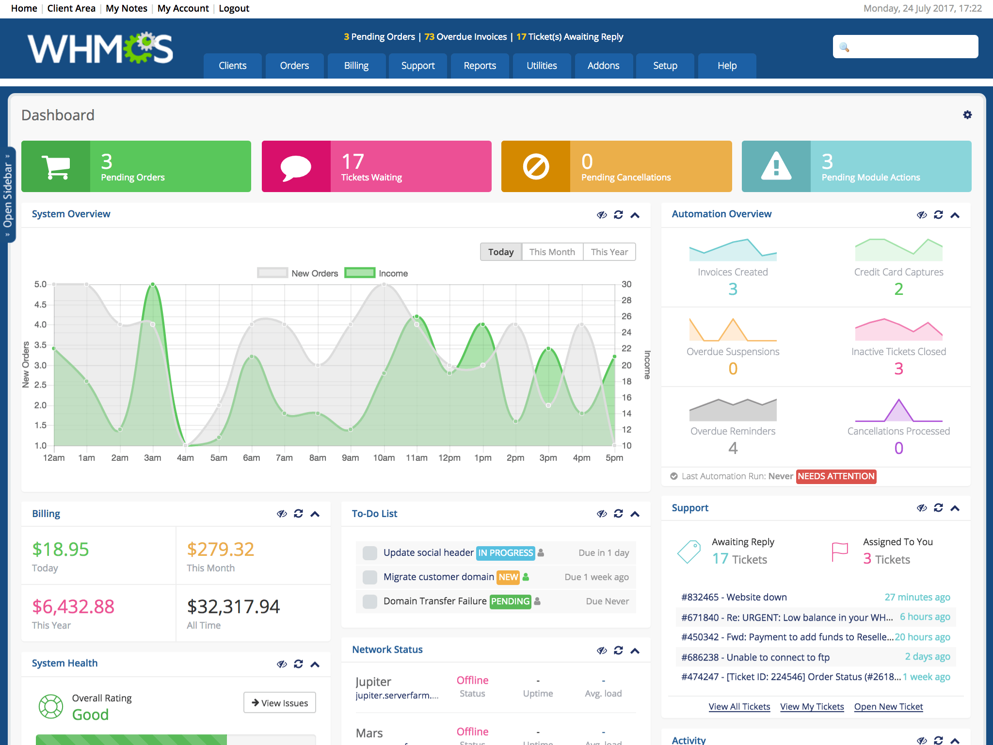 Asistență premium de la tehnicieni acreditați! WHMCS® vine, de asemenea, cu asistența noastră internă, pentru a te ajuta la rezolvarea tuturor necesităților în ceea ce privește folosirea licențelor dar și a eventualelor probleme cu întreg sistemul WHMCS®.